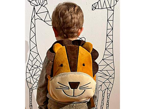 Zainetti da bimbo in morbido peluche a forma di leone con tasca frontale